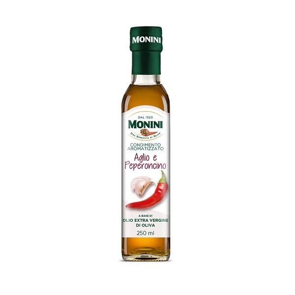 Monini sarımsak ve acıbiber aromalı zeytinyağı, özellikle baharatlı ve yoğun aromalı lezzetler hazırlamak isteyenler için ideal bir gurme yağdır.